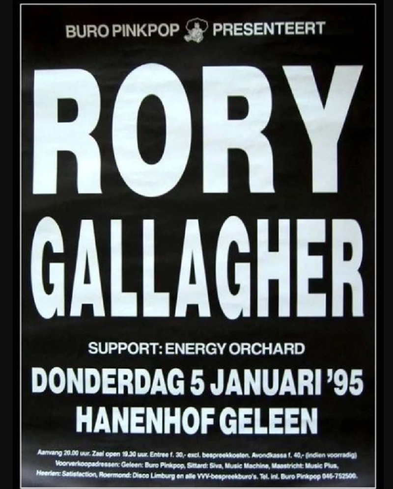 There are very few regrets I have—but I do regret that I did not buy tickets on January 5, 1995, for Rory Gallagher in my hometown of Geleen, in the Netherlands. The concert was in de Hanenhof, which would not be the world’s best venue, but it could hold a decent amount of music fans.