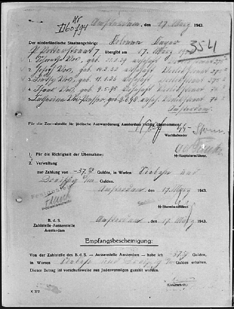 The payment was for the delivery of 5 people to the SS. Although it doesn’t say they are Jewish , it is safe to presume they were. In fact we can say this with a 100% certainty. I discovered the document on the NIOD website, which is the Dutch organisation dealing with all things WW2.