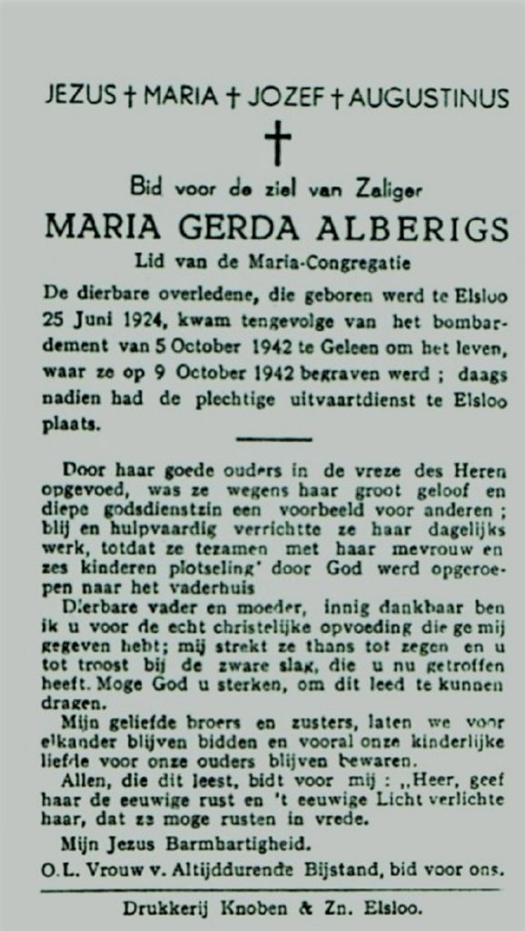 Maria Gerda Alberigs born on June 25,1925 in the nearby village of Elsloo. She was buried on October 9,1942.