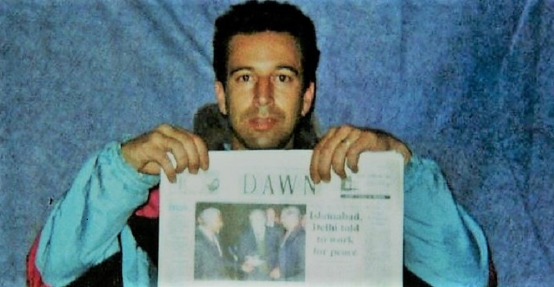 Four days after his disappearance, a group calling itself “The National Movement for the Restoration of Pakistani Sovereignty” sent an e-mail to several U.S.- and Pakistan-based news organizations claiming responsibility for kidnapping Pearl and accusing him of being an American spy. The e-mail also contained four photographs of the journalist, including one in which he is held at gunpoint and another in which he is holding a copy of the January 24 issue of Pakistan’s Dawn newspaper.
