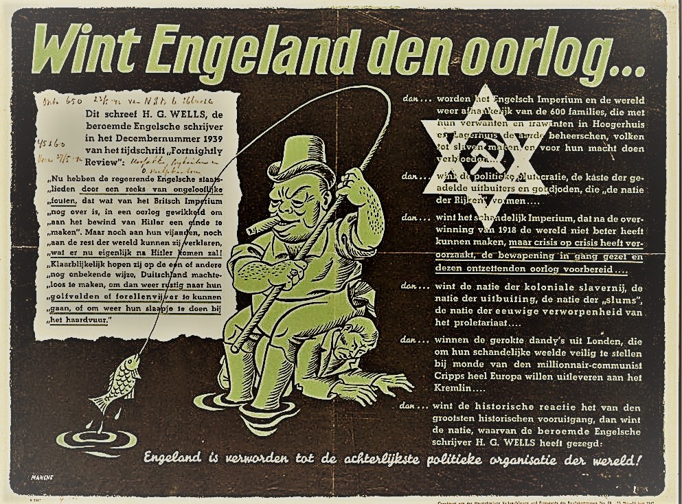 Wells warns about the mistake the English government has made by going to war with Germany. To end Hitler’s regime, he warns about what may come after Hitler. He also says that they think that they can render Hitler powerless just so that can go back fishing and golfing, quoted on the poster of Lou Manche. This of course was one of those cherry-picking tactics of the Nazis, H.G. Wells had been one of the authors banned by the Nazi regime. His book “The Outline of History: Being a Plain History of Life and Mankind” was one of the books, thrown into the flames, a the 1933 book burnings. But if it suited the Nazi agenda, they would be willing to overlook that fact.