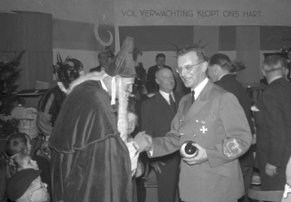 This one I found disturbing. In this picture you see Arthur Seyss-Inquart, Nazi appointed Reich commissioner for the Netherlands, shaking hands with Sinterklaas and the ‘holy’ man appeared to enjoy his company. Arthur Seyss-Inquart also shared responsibility for the deportation of Dutch Jews and the shooting of hostages.