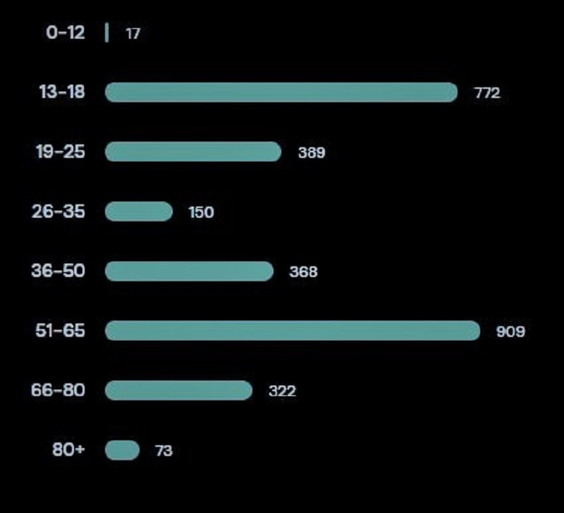 There were about 3000 people on that transport. Below is the breakdown of the age groups.