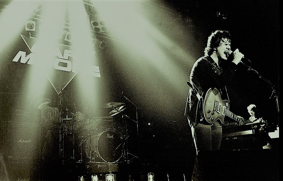 He credited his father for getting him started in music. When Moore was six years old, his father invited him onstage to sing “Sugartime” with a showband at an event he had organised, which first sparked his interest in music. His father bought him his first guitar, a second-hand Framus acoustic, when Moore was 10 years old. Though left-handed, he learned to play the instrument right-handed. Not long after, he formed his first band, The Beat Boys, who mainly performed Beatles songs. He later joined Platform Three and The Method, amongst others. Around this time, he befriended guitarist Rory Gallagher, who often performed at the same venues as him. He…
