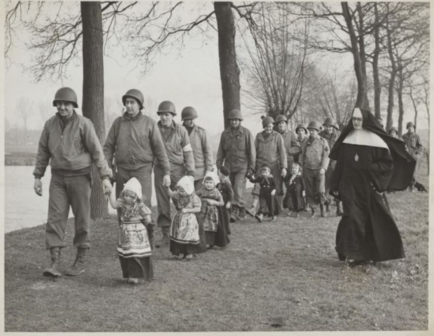After months of fighting fierce battles, this must have been the most adorable way ever for the US troops to spend their days taking these adorable toddlers for a walk; only a few days earlier, the Germans had uttered a threat to kill the children.