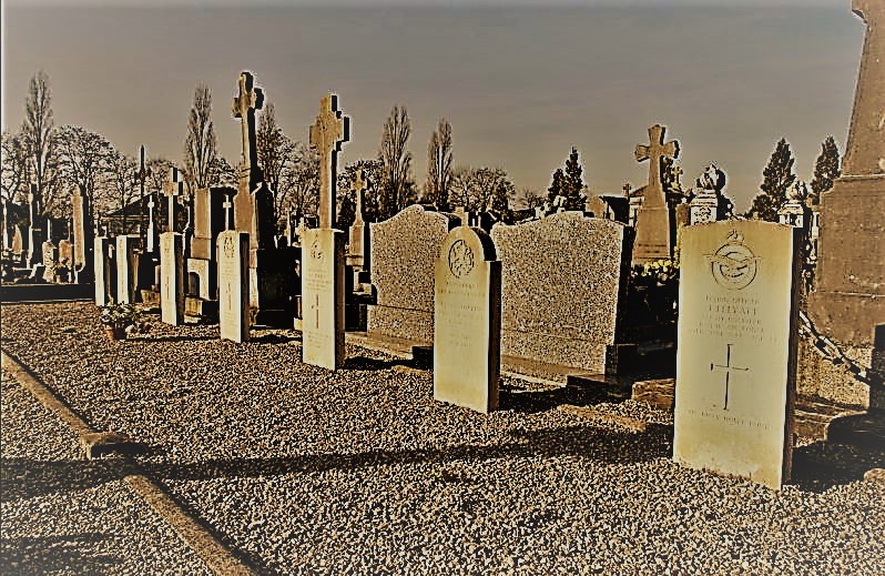 He flew a Halifax Mk-III, MZ684, ZA-‘B’ bomber. Completed 6 missions before being shot down by German A.A. fire near Entrammes in France on the night of 9/10 June 1944. All seven crew were killed and are buried at the Cimetière Vaufleury at Laval, Dept. Mayenne, France.
