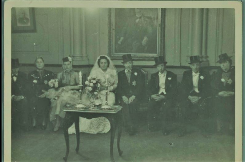 The picture is a wedding picture of Leendert Vischschraper and Mietje Zendijk. They got married on 12 August 1942 in Amsterdam.