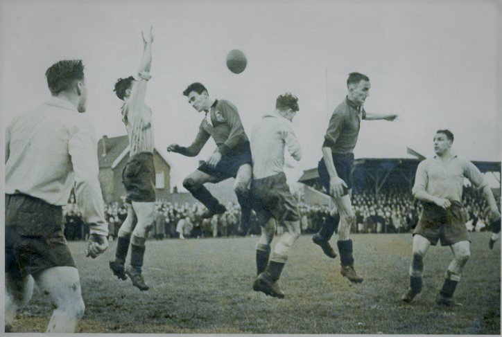 Nevertheless, an emergency football competition started in November 1944 with five clubs from Sittard and Geleen. “The proceeds go to the needy Netherlands,” says Limburgsch Dagblad. On 19 November, the Sittardse Boys and Maurits played in the then-Baandert-stadium, in the presence of several thousand spectators. After about half an hour Harry Ehlen of the Sittardse Boys dropped to the ground because he heard a whooshing sound. Seconds later, shells hit the field for nearly ten minutes. There were also impacts elsewhere in the city centre.