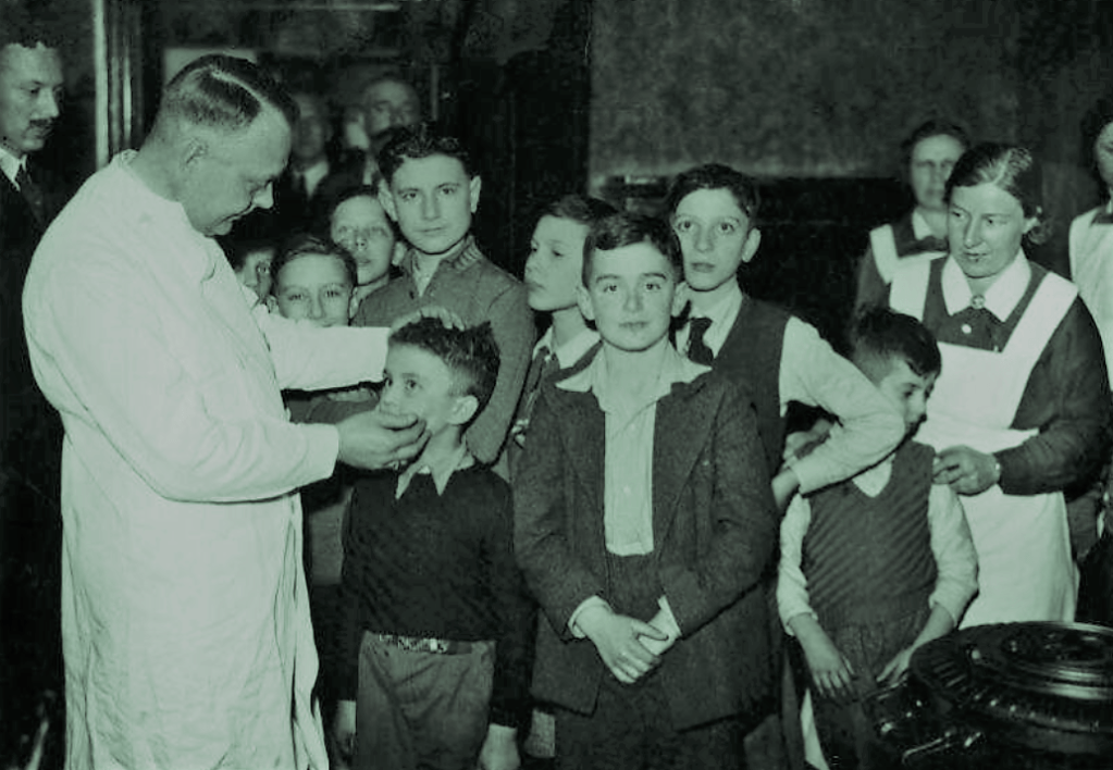 After a weeks-long journey, 907 German Jewish refugees arrived with the MS St. Louis in the port of Antwerp. Two children look dejectedly through the porthole of the ship at the disembarkation in the harbour.