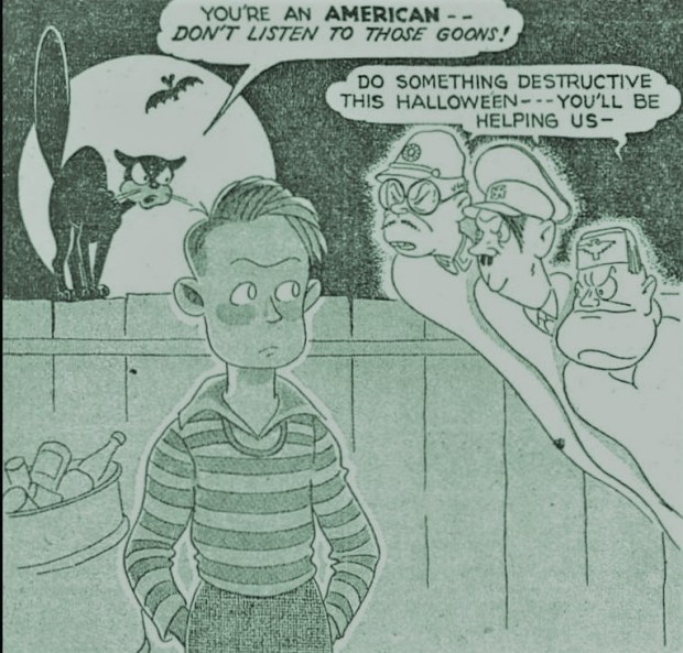 Here are some World War II Halloween stories and images. The above illustration was published in the San Diego Union on 25 October 1942.