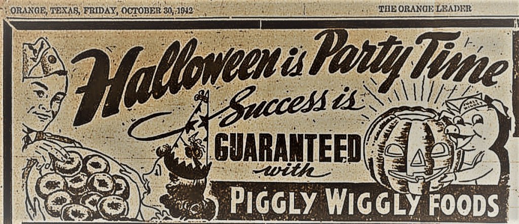 And don’t forget that traditional cider and doughnuts, orange and black candies, ice cream moulds with a pumpkin, or made-with-honey pumpkin pie contribute much in a decorative way.” —Wartime Entertaining, Ethel X. Pator [Consolidated Book Publishers: Chicago] 1942 (p. 49).