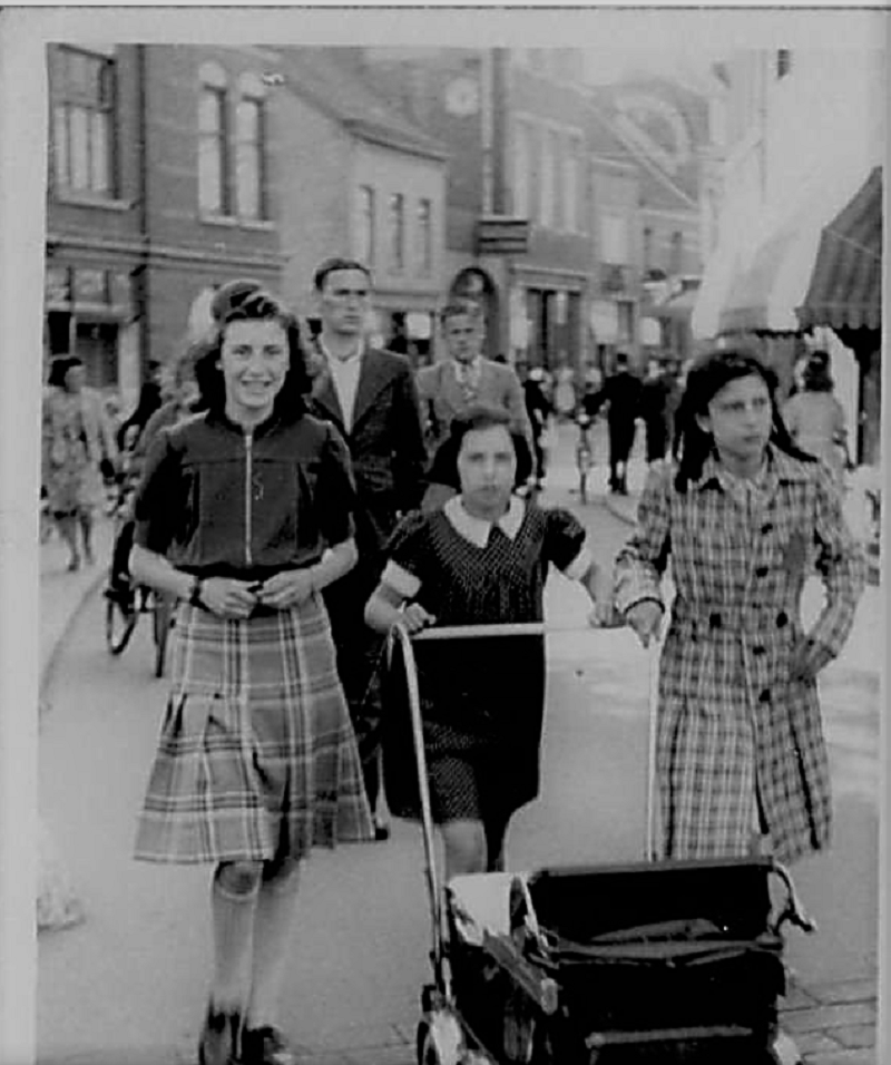 The girl pushing the pram is Hermine Zondervan. She was born on the Brandstraat in Sittard, where her father had a business as an electrician and optician. Benoit had taken it over from his father. Hermien’s grandparents died when she was still small, in 1932 and 1934. Afterwards, Max Capell from Düren, a cousin of her father, lived with them for a while. Hermien had a grandmother on her mother’s side who lived on Stationsdwarsstraat.