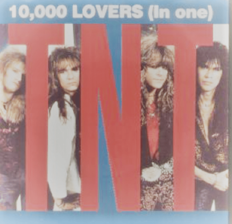 “10,000 Lovers (In One)” is a hit single by the Norwegian band TNT, taken from their 1987 album, Tell No Tales. It was written about a girl who TNT’s vocalist at that time, Tony Harnell, knew. The single reached the Billboard Hot 100 chart in America, peaking at number 100 and earned the band a Norwegian Grammy.