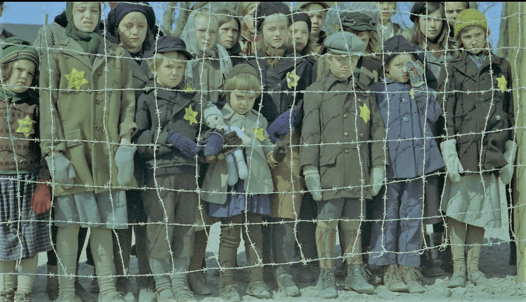 “Helmut Doork, a once great and famous clown, is fired from the circus. Getting drunk at a local bar, he pokes fun at Hitler in front of some Gestapo agents, who arrest and send him to a prison camp. Helmut angers his fellow prisoners by refusing to perform for them, wanting to preserve his legend. As time passes, Jews are brought into the camp, with fraternizing between them and the other prisoners strictly prohibited. Eventually, Helmut is forced by the others to perform or be beaten. His act bombs and he leaves the barracks depressed, trying the routine out again alone in the prison yard. He hears laughter and sees a group of Jewish children watching him through a fence. Happy to be appreciated again, he makes a makeshift clown suit and begins to regularly perform. His audience grows, but a new prison Commandant orders Helmut to stop. When he refuses and continues to perform, he is beaten and thrown in solitary confinement. But the Nazis soon come up with a use for Helmut, keeping the children quiet as they are loaded into a boxcar to be sent to another camp. Helmut complies, but is accidentally locked in with the children and arrives the next day at Auschwitz.”