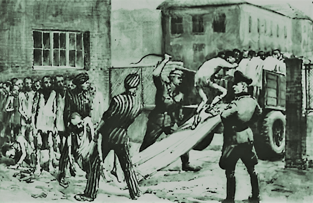 Loading selected prisoners for the gas chambers, by Jan Komski