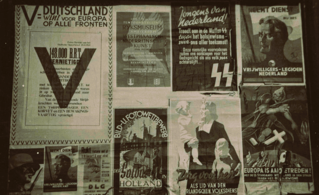 The NSB (Dutch Nazi Party) was intensively involved in propaganda. Posters and placards flooded the Netherlands, both before and during the war.