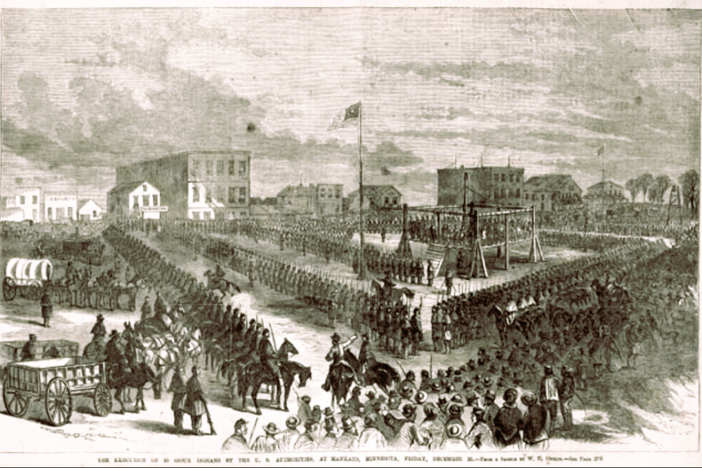 Thirty-eight Native Americans were hanged on Dec. 26, 1862, as ordered by President Abraham Lincoln, on December 6, 1862, after the 1862 Dakota War, which was also known as the Sioux Uprising of 1862. The sentences of 265 others were commuted.