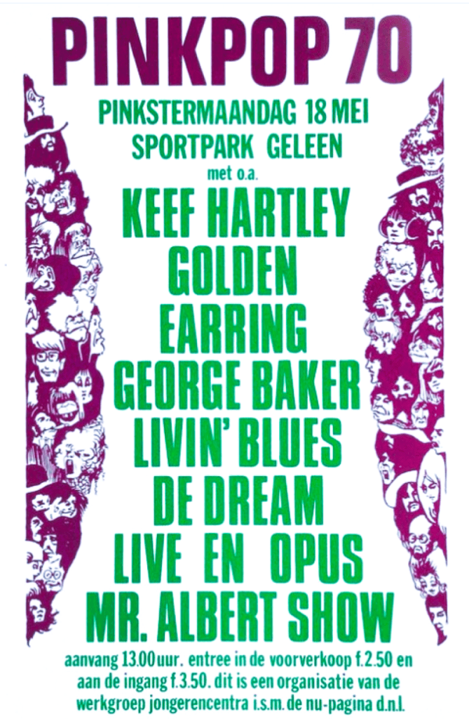 Pinkpop, the Netherlands’ oldest and best-known pop festival, took place for the first time in 1970 on Pentecost Monday, May 18, in Geleen. The name ‘Pinkpop’ is a combination of ‘Pinksteren’ the Dutch for Pentecost, and ‘Pop’ the festival is usually organized during the Pentecost weekend, except for the editions in 2008, 2010, 2013, 2015 and 2016. Initially, the festival was a one-day festival but grew into a multi-day event in Geleen, Baarlo (one-off) and later finally Landgraaf.