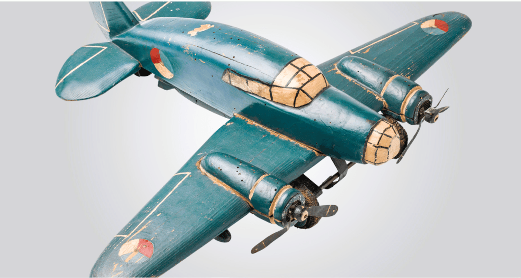 When a platoon of seventy German soldiers suddenly arrived at the farm, Joop had to spend more than two consecutive weeks hidden in a cubbyhole under the hay. On his eighth birthday, a courier from the Resistance delivered a splendid gift to Joop. His cousin Jonny and a Russian pilot, who was hiding nearby at the Geurink family’s farm in Lichtenvoorde, had made a bomber for him from a wooden toilet seat. On the first anniversary of the liberation, a parade took place in the nearby village of Varsseveld. Joop participated in the procession dressed as a pilot, proudly carrying his plane under his arm.