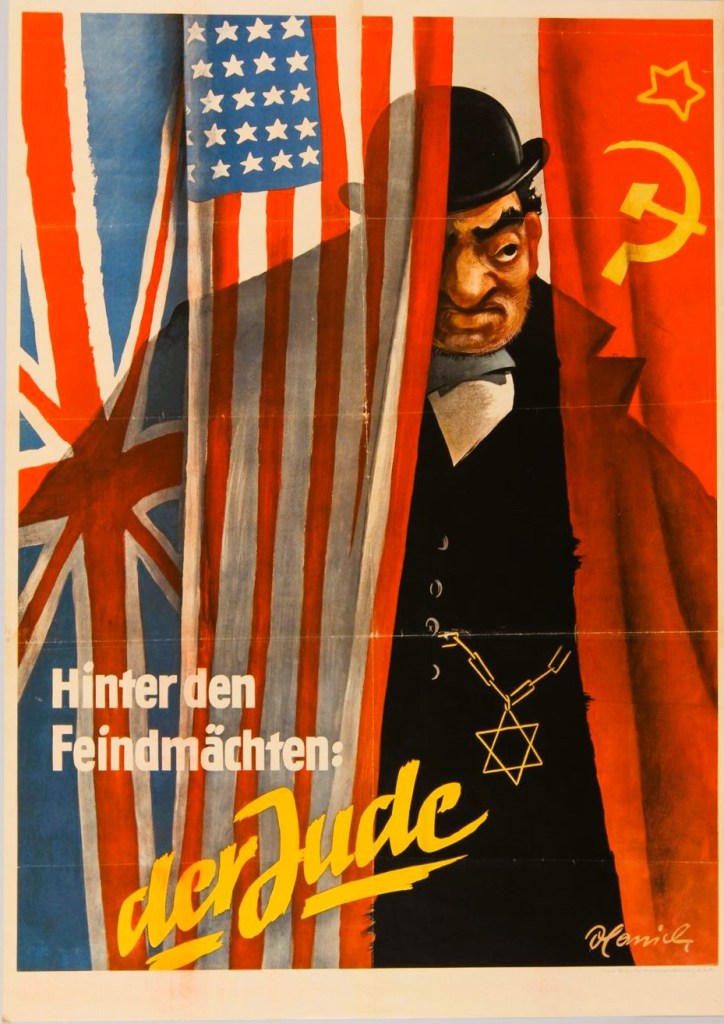 The “Eternal Jew” Myth: Jews were depicted as an alien, parasitic race that infiltrated and corrupted societies for personal gain. They were portrayed as being behind capitalism, communism, and other systems seen as threats to the Nazi worldview.