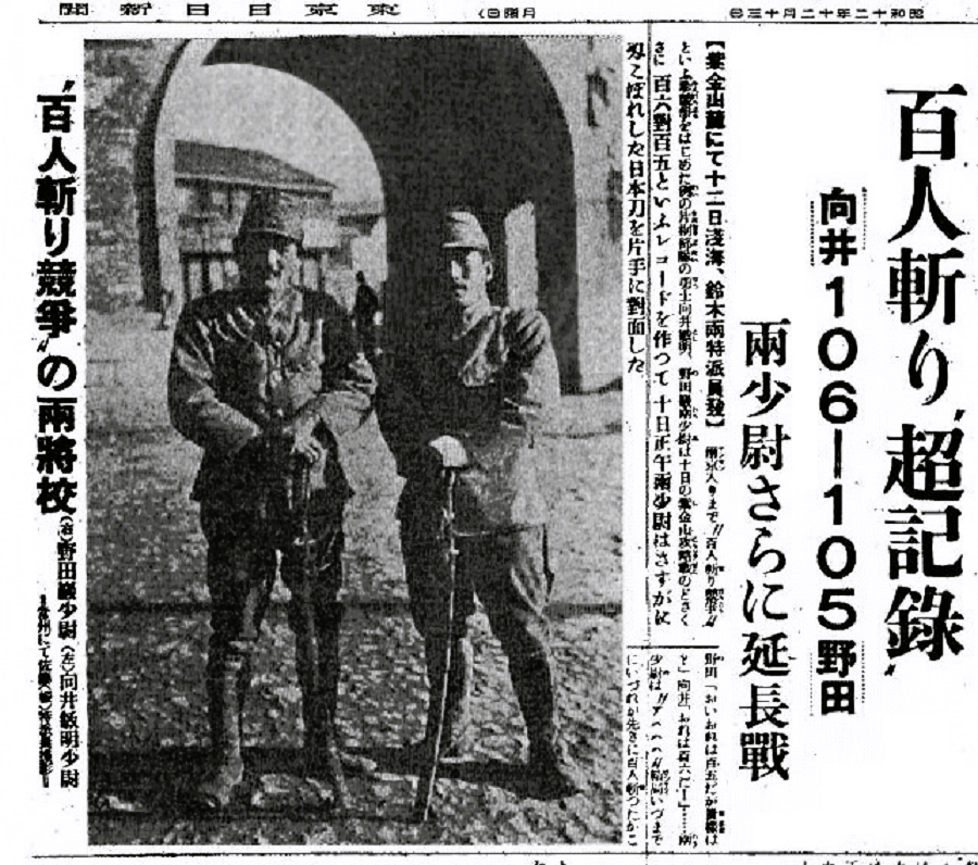 For example, in 1937, during the Second Sino-Japanese War, two Japanese officers—Toshiaki Mukai and Tsuyoshi Noda—reportedly engaged in a gruesome contest to see who could kill 100 people with a samurai sword the fastest.