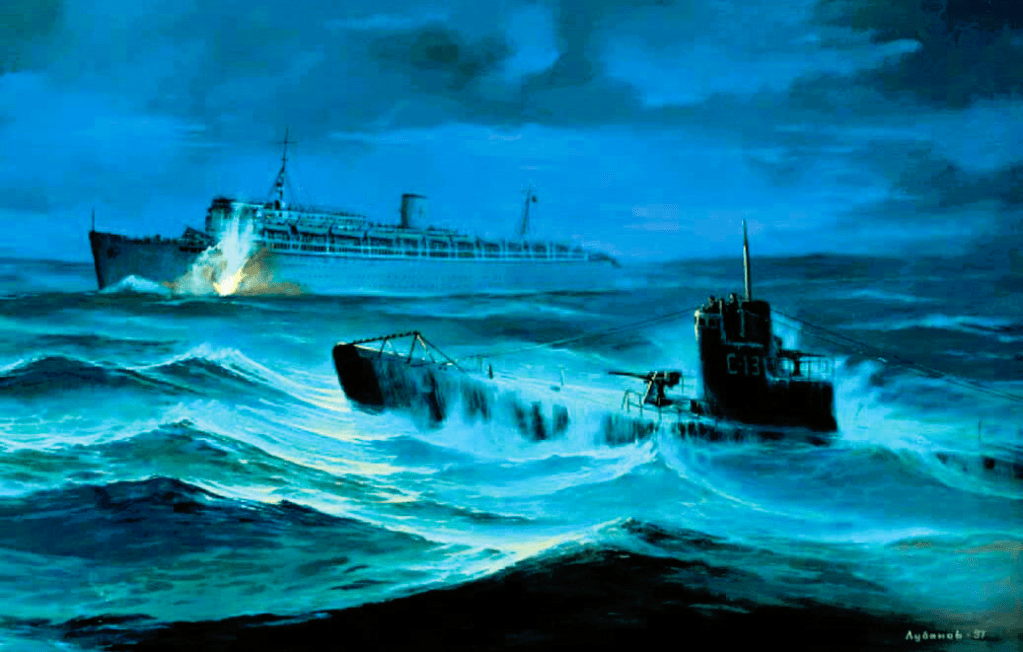 At around 21:00 CET, the Soviet submarine S-13, commanded by Captain Alexander Marinesko, sighted the ship.