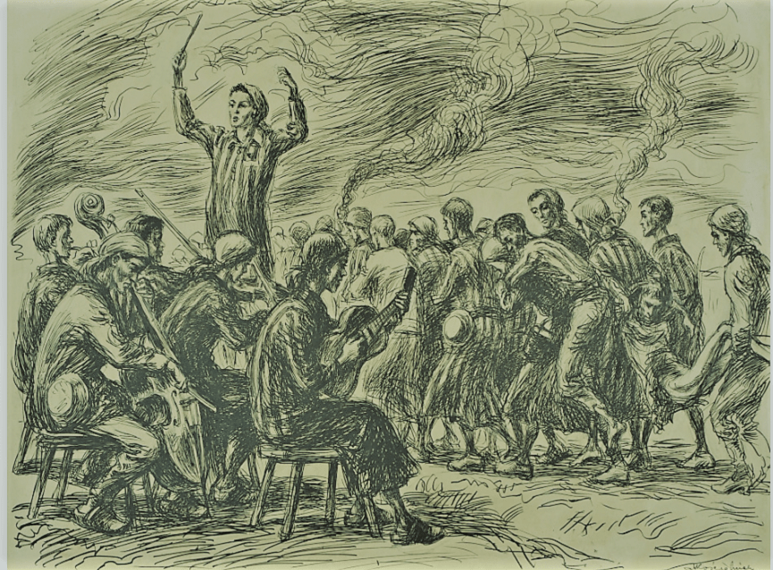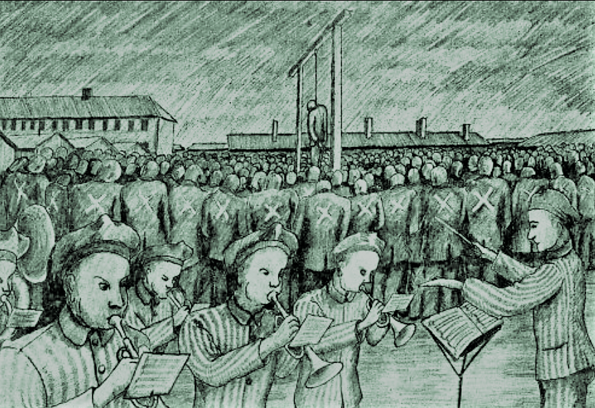 “Every morning we played as the inmate work crews departed; the same in the evening, when they returned to the camp . We also played on other occasions, especially during executions, which usually occurred on Sunday afternoons or evenings . Perhaps they intended to drown out the last protests and final curses with music. A grotesque spectacle that had been ordered at the highest level. And the SS men surrounded us with loaded weapons.”