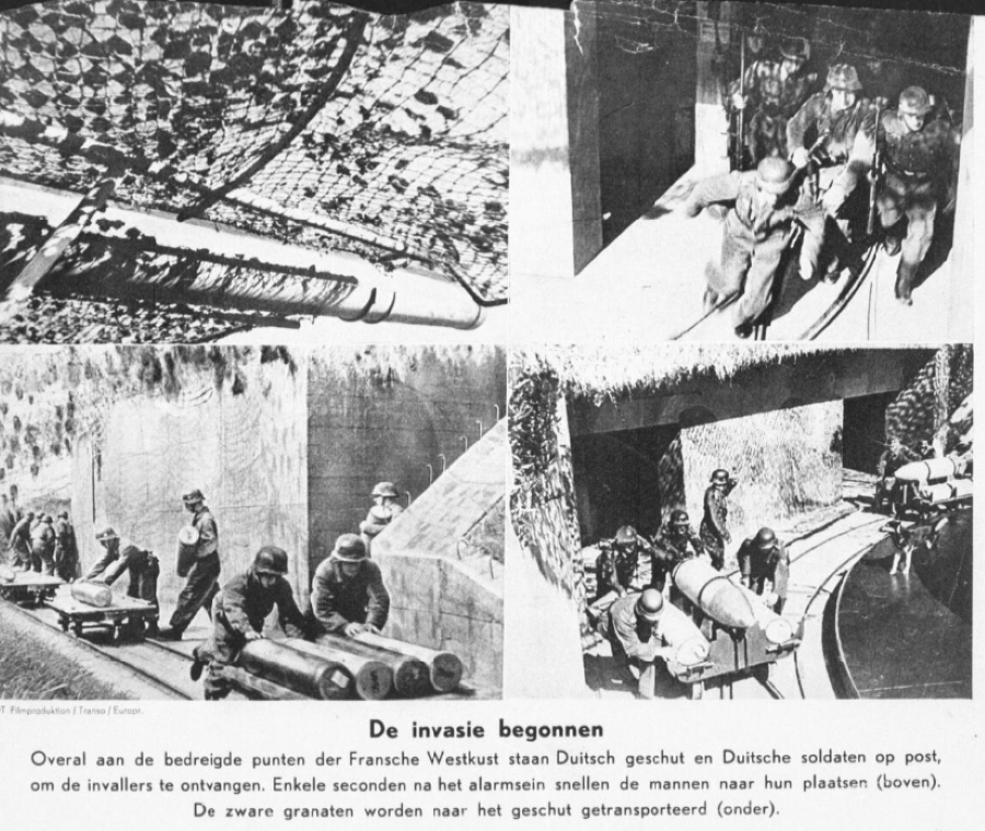 At all threatened points along the French west coast, German artillery and German soldiers are in position to receive the invaders.