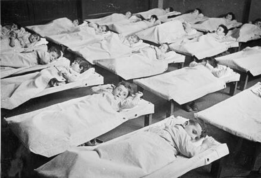 Children in the dormitory of the daycare opposite the Hollandsche Schouwburg, ca. 1942