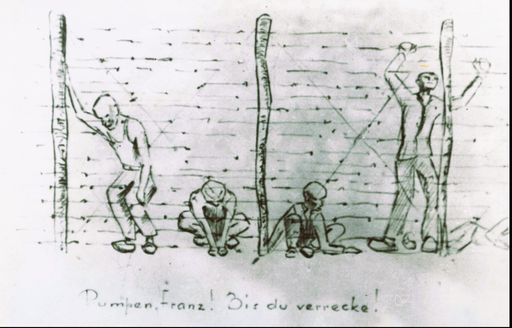 This poem reflects what an artist might have expressed during the Holocaust. The accompanying images are drawings created by artists who lived through the Holocaust—some of whom survived, while others did not.