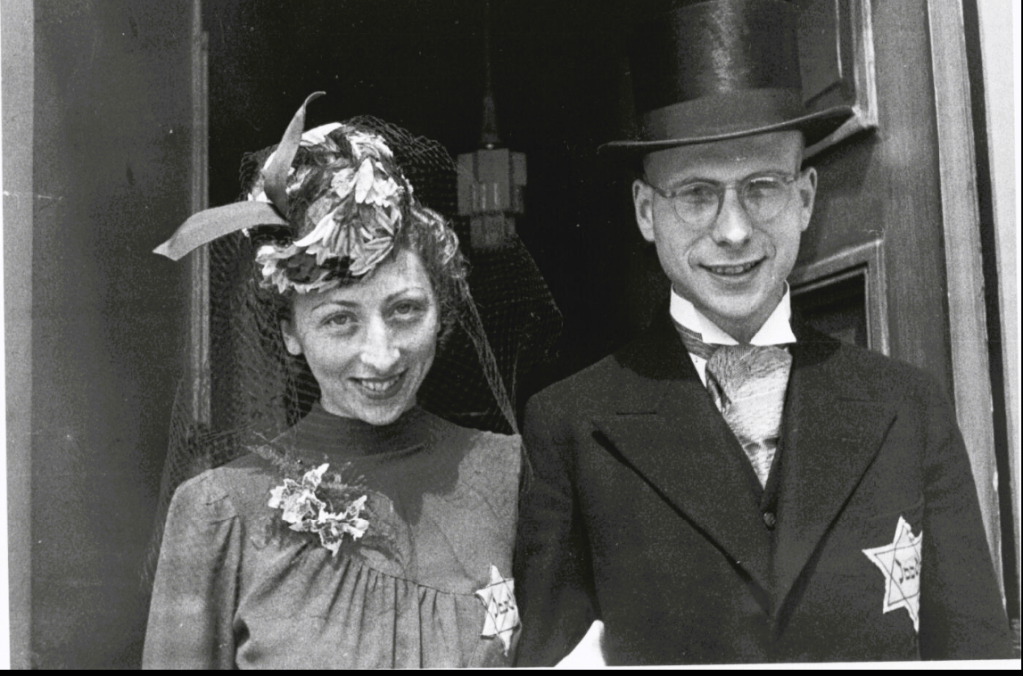The Jewish wedding on July 26, 1942, in The Hague of Edie (Elias) van Biene and Sara (Sonja) Rood. The groom picks up his bride from her parental home at Zuid Binnensingel (now Buitenom) 158 in The Hague.