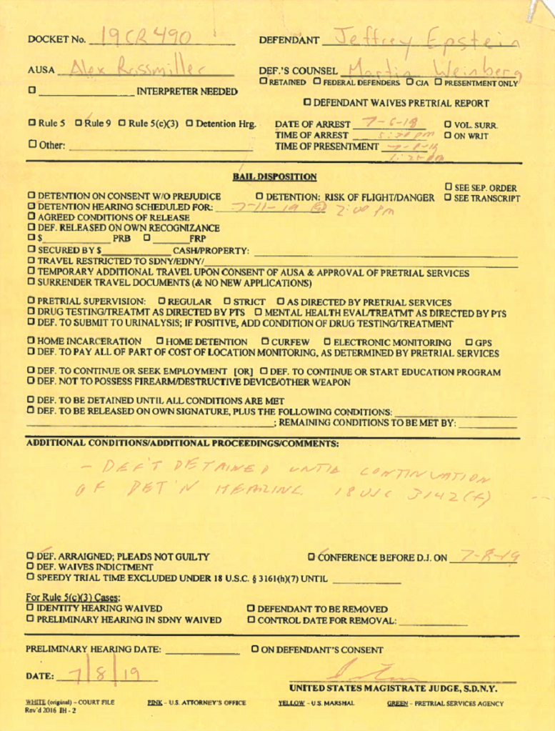 Epstein was arrested in July 2019 on federal sex-trafficking and conspiracy charges and detained at the Metropolitan Correctional Center (MCC) in Manhattan.