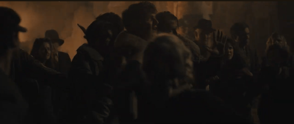 The image above is from Episode 6 of Masters of the Air. In this scene, captured USAAF airmen are marched through the burning streets of a bombed German town. A furious mob of civilians, spurred on by a local party official, overpowers the guards and attacks the Terrorflieger (“terror flyers”). Most of the airmen are killed.