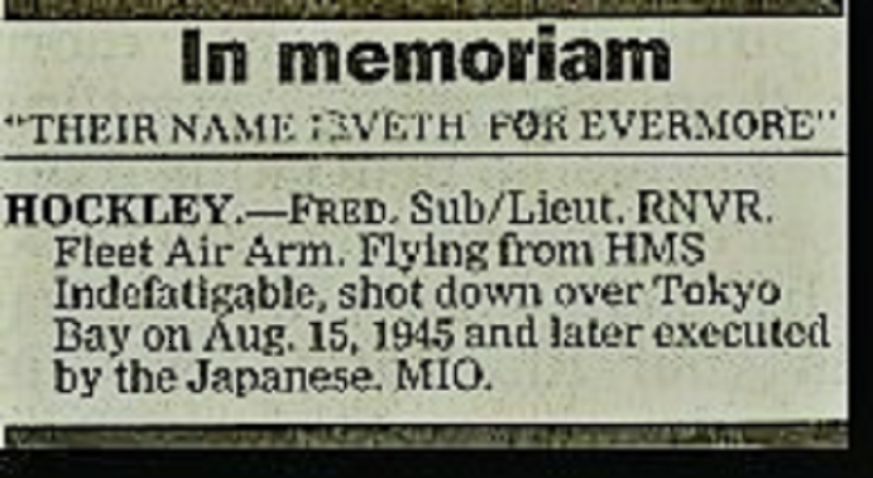 Sub-Lieutenant Frederick (Fred) Hockley was an English Royal Navy Fleet Air Arm fighter pilot who was shot down over Japan while taking part in the last combat mission flown by British aircraft in the Second World War.