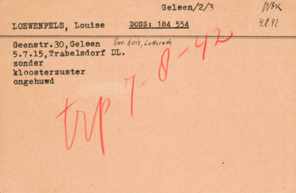While in Geleen, Luise continued her work as a nun, living according to the rules and spiritual practices of her order. The convent in Geleen was part of a broader network of religious institutions in the Netherlands that provided sanctuary for those fleeing the Nazis. Luise’s life in the convent was marked by her dedication to her faith and service despite the growing dangers around her.