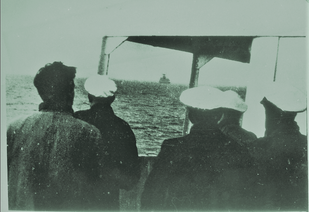 While waiting to go to dinner, young Donald Wilcox of Dartmouth, N.S., had made his way to the very peak of the ship’s bow and was watching the waves curl away from the prow when the ship rose up several feet and then fell back down sharply. “I was almost thrown off my feet,” he remembered years later.
