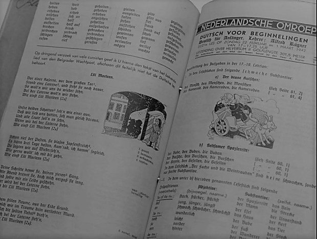 On Sunday 5 October 1941 Dutch listeners were getting ready, with the aide of a textbook for their first German lesson, broadcast on a Dutch radio station from the city of Hilversum. Alfred Rügner began by telling his audience a little something about German pronunciation.