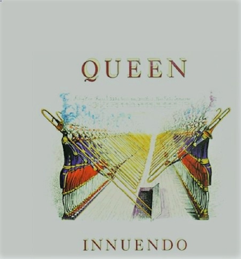 “Innuendo” began as a jam session in Switzerland amongst Brian May, Roger Taylor and John Deacon in spring 1989. Freddie Mercury was upstairs and heard them playing the beat, and turned it into a song, creating the melody and starting off the lyrics. From then on all four worked on polishing the track and Taylor took over the lyrics (which were written as a tribute to Led Zeppelin and their song “Kashmir”)