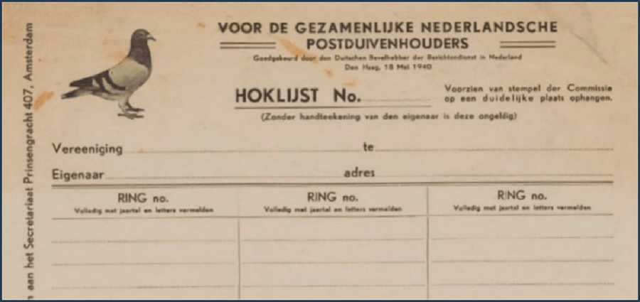 A fierce outcry from pigeon owners followed—there were over 25,000 in the Netherlands—and it appeared to have some effect. The German occupiers revised their policy: instead of outright extermination, pigeons were banned from flying and had to be registered. To enforce this, a special police unit known as the Duivenbrigade (Dove Brigade) was formed, tasked with shooting down any pigeons found flying freely.