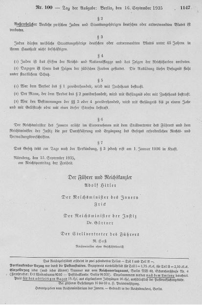 Marriages between Jews and citizens of German or related blood are forbidden. Marriages nevertheless concluded are invalid, even if concluded abroad to circumvent this law.