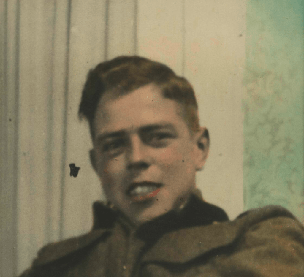 Pvt. Claude Wilber Derrick was the son of Richard and May Isabel (Shannon) Derrick of Canterbury, New Brunswick. After being killed in action on March 2,1945, in Germany, he was first laid to rest in a temporary cemetery in Bedburg. In keeping with the order that no Canadian fallen remain on German soil, his remains were later moved to the Groesbeek Canadian War Cemetery in the Netherlands (Plot VII. H. 7). Since 1947, his memory has been honored by Truus Kersten, a local 19-year-old who adopted his grave as part of a Dutch tradition of gratitude.